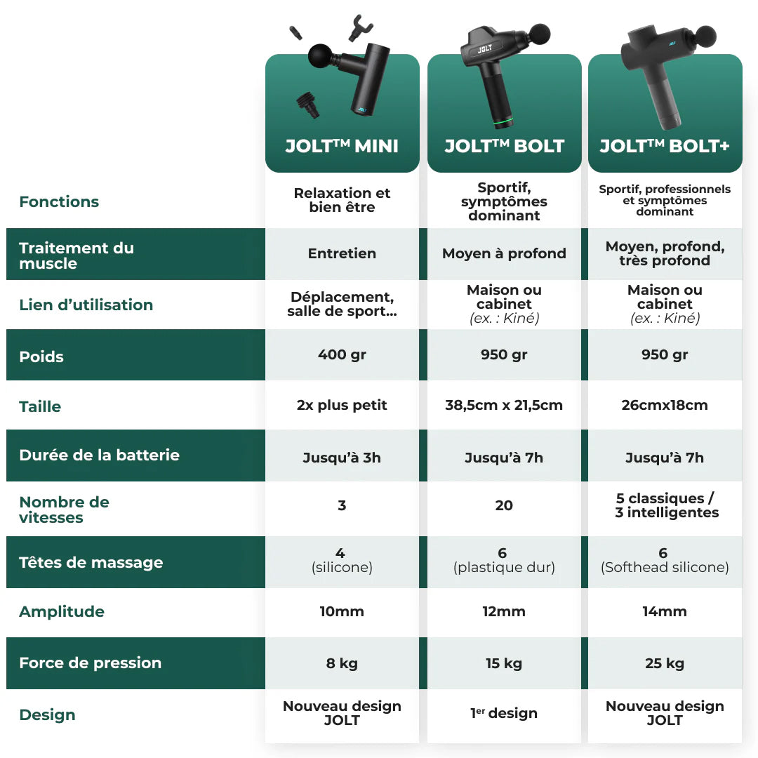 JOLT s'adresse à tout type de sportif. Un programme de massage détaillé est fourni avec le produit pour vous accompagner selon les muscles que vous souhaitez travailler.